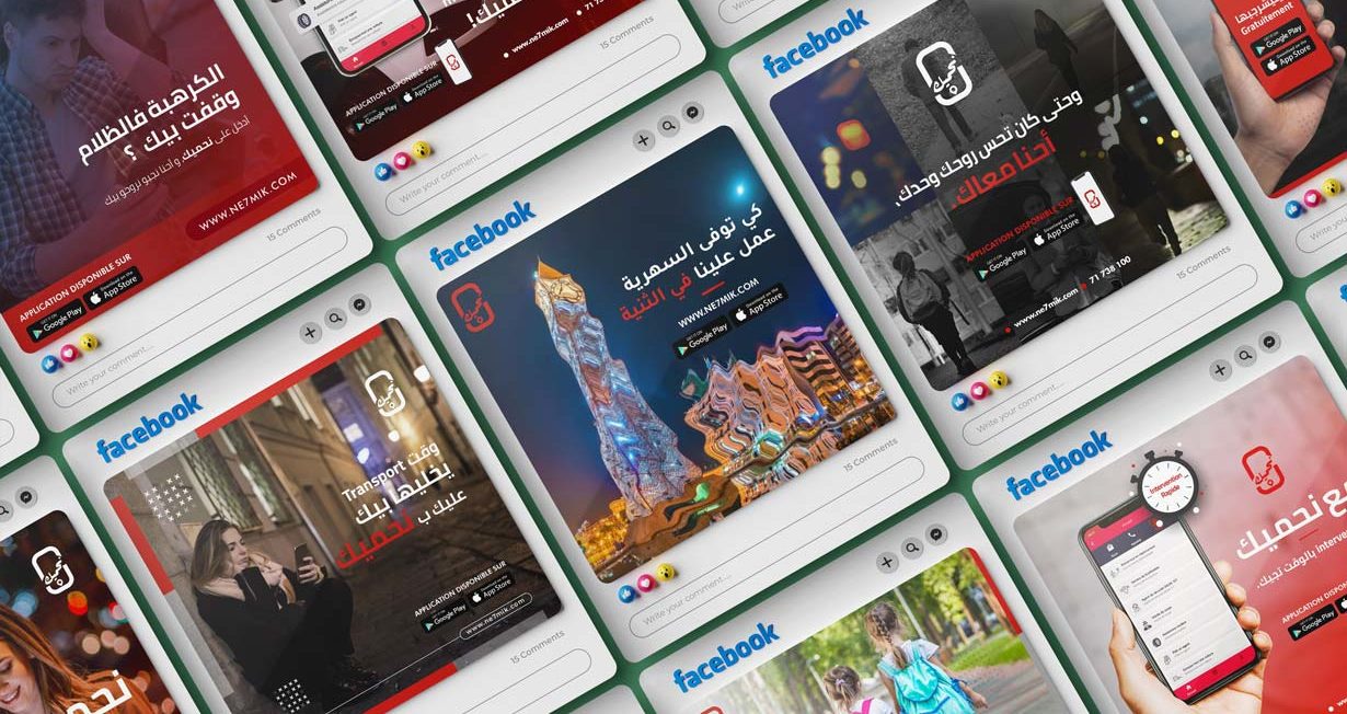 Nous avons créé l’identité visuelle de Ne7mik et nous avons réalisé le community management mensuel sur tous les réseaux sociaux. Chaque contenu inventif passe par tout un processus de créativité et d’adaptation pour chaque réseau qui nécessite la collaboration de nos experts en marketing et en design graphique pour qu’il soit engageant et pertinent. Nous avons défini un calendrier éditorial mensuel avec les thématiques et les formats à exploiter (carrousel, vidéos…) et nous avons utilisé dans les accroches des fonctionnalités clés (mentions, hashtag…) pour gagner en notoriété, en engagement et surtout le maximum des téléchargements de l’application.