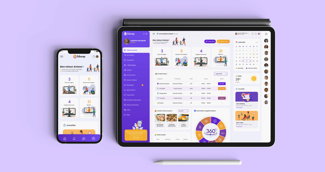 Dans l’objectif de placer l'élève au centre des apprentissages, ADN Expertise nous a confié la création de 3 applications web et 3 applications mobiles sous le nom « EDUCAP ». Pour les aider à refléter l’image d’une école plus inclusive nos spécialistes dans les volets UI/UX ont opté pour un design très créatif pour adresser au mieux les besoins des principales parties et une structure ergonomique pour optimiser leurs parcours.